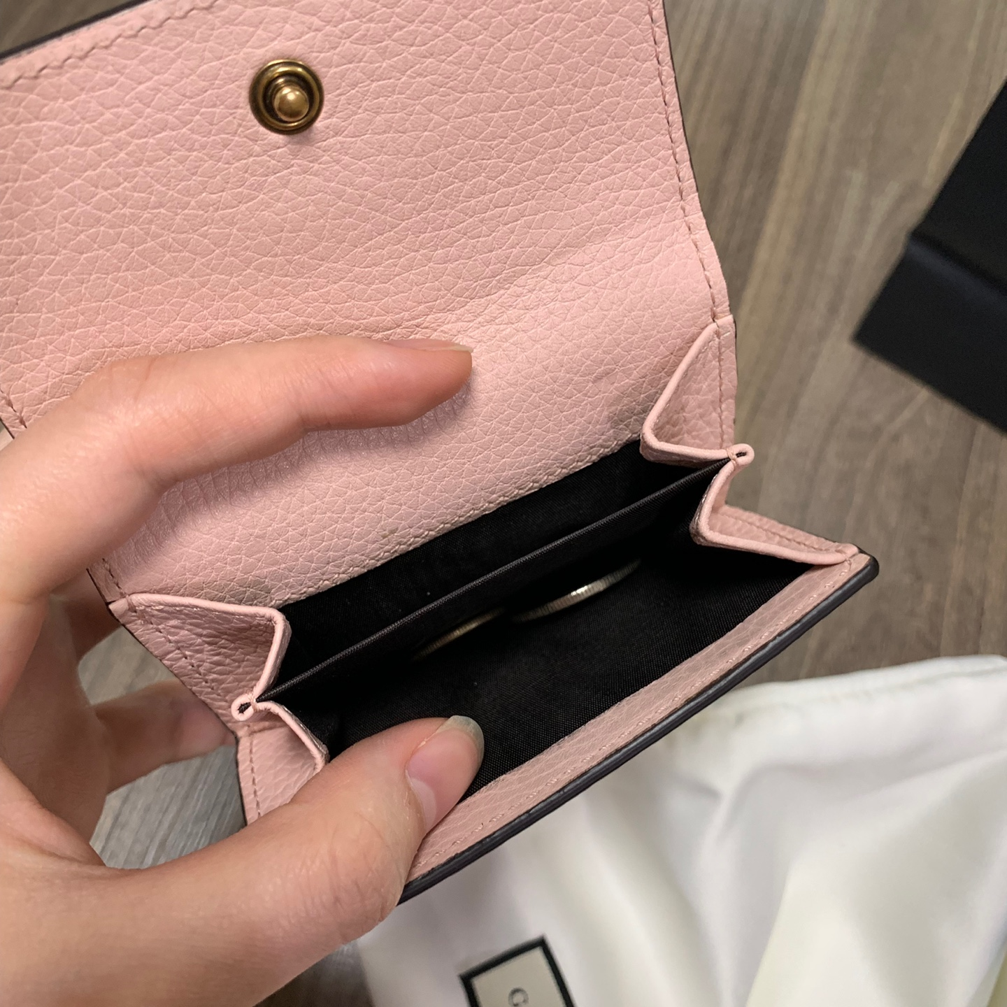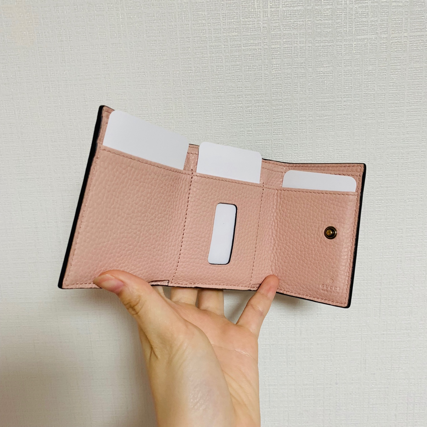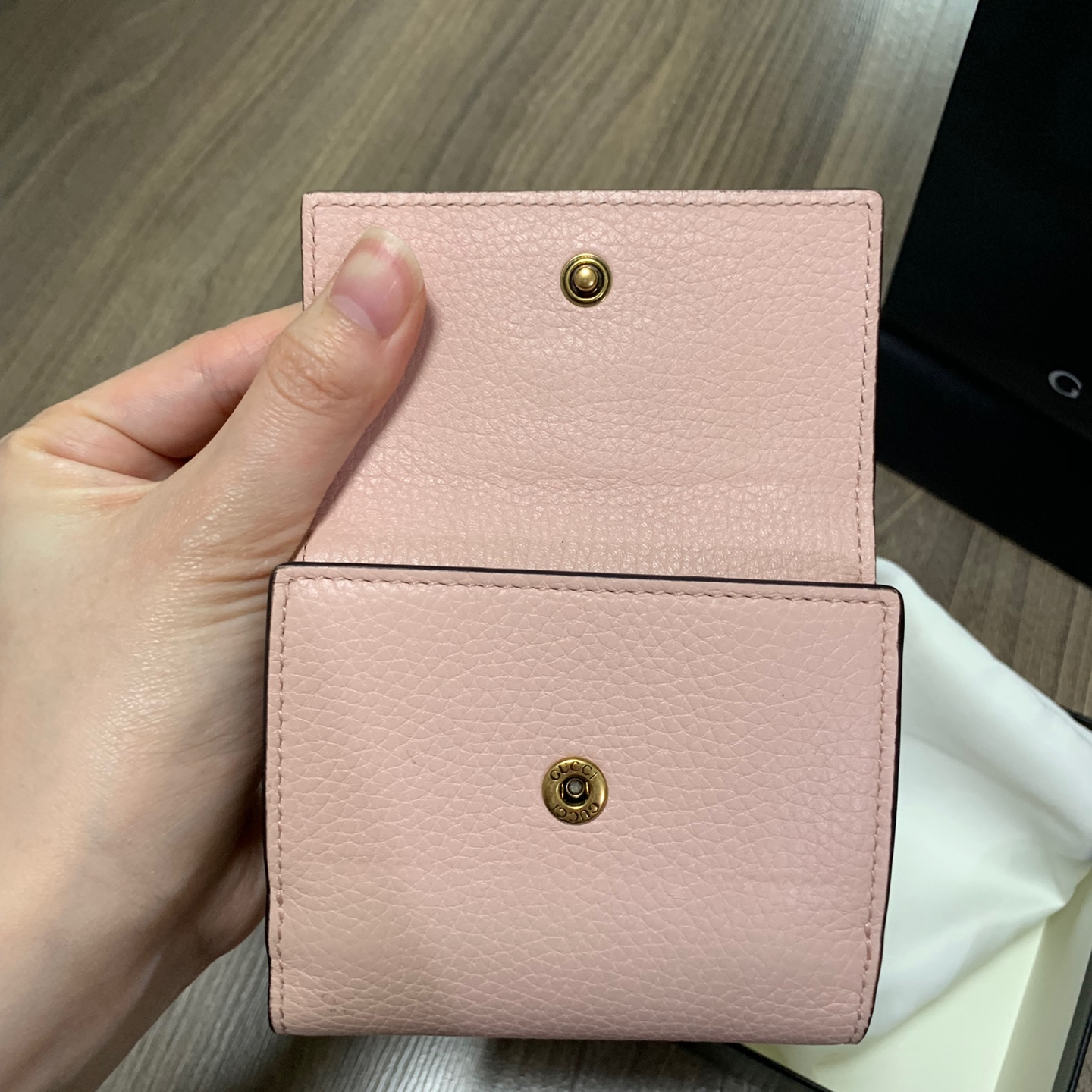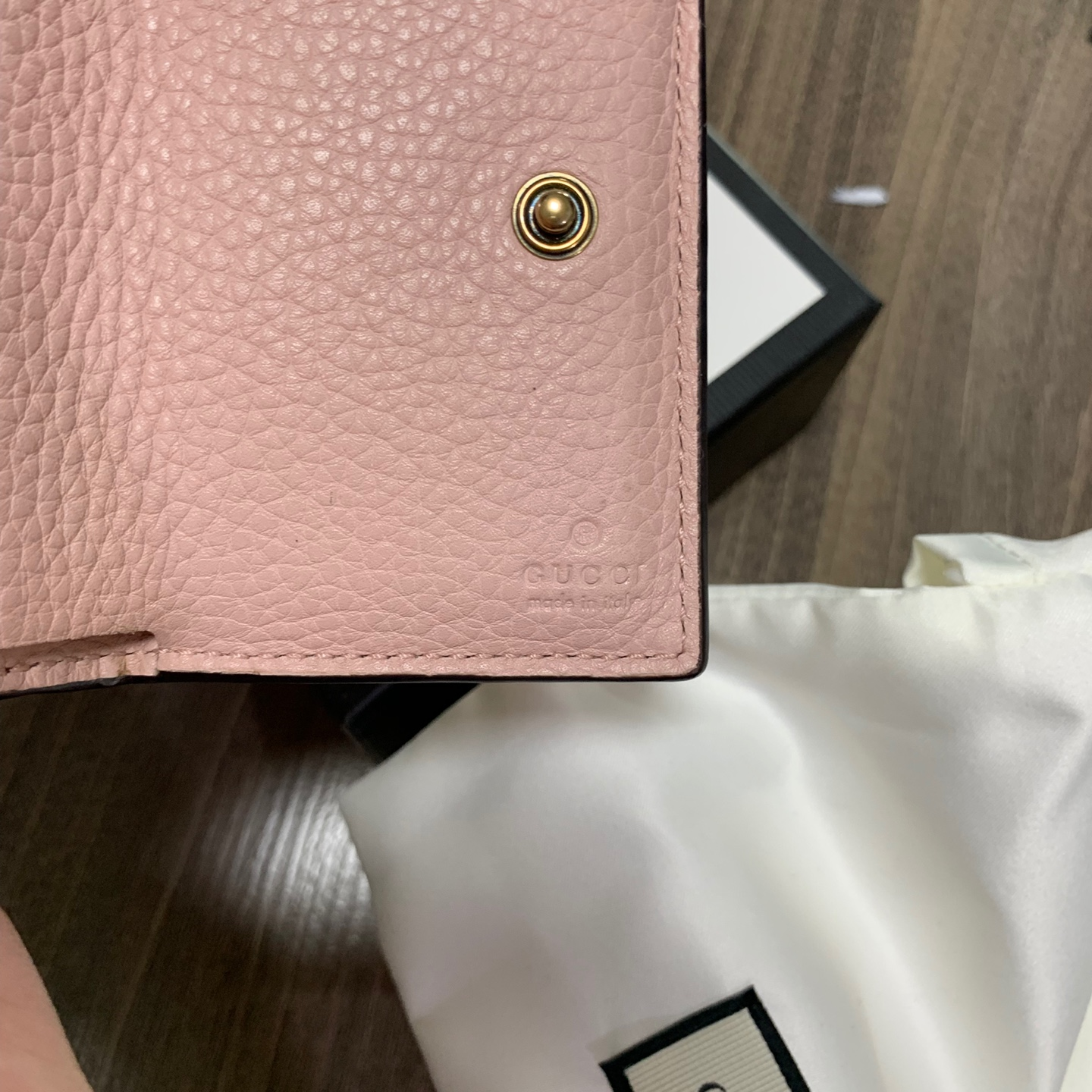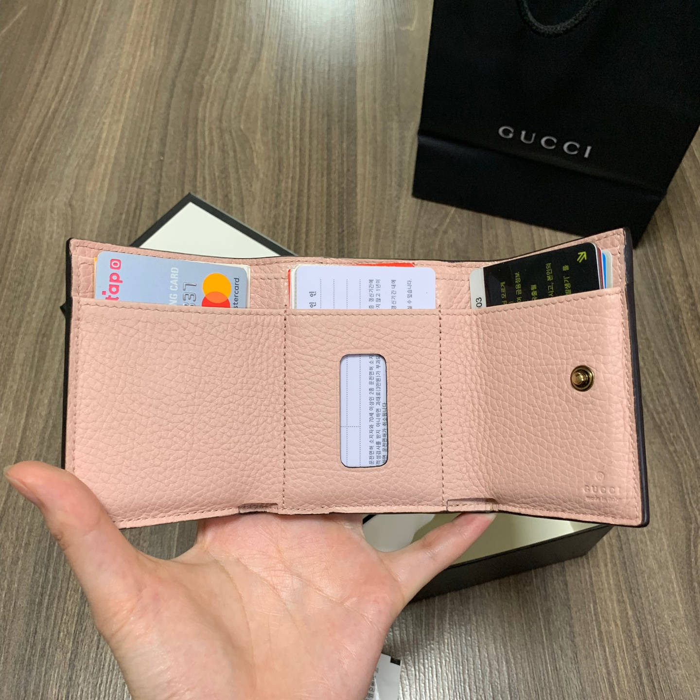 요롷게 똑딱이 형태이고 구찌라고 로고가 자그맣게 새겨져 있네요~ 이 사진에 있는 색감이 실제 지갑 색이랑 가장 비슷한 것 같아요.