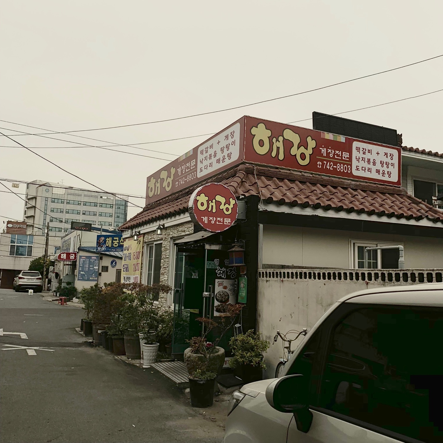 해강 위치는 순천 시청 근처에 있어요. 이쪽 골목에 식당이 여러 곳 있더라고요.