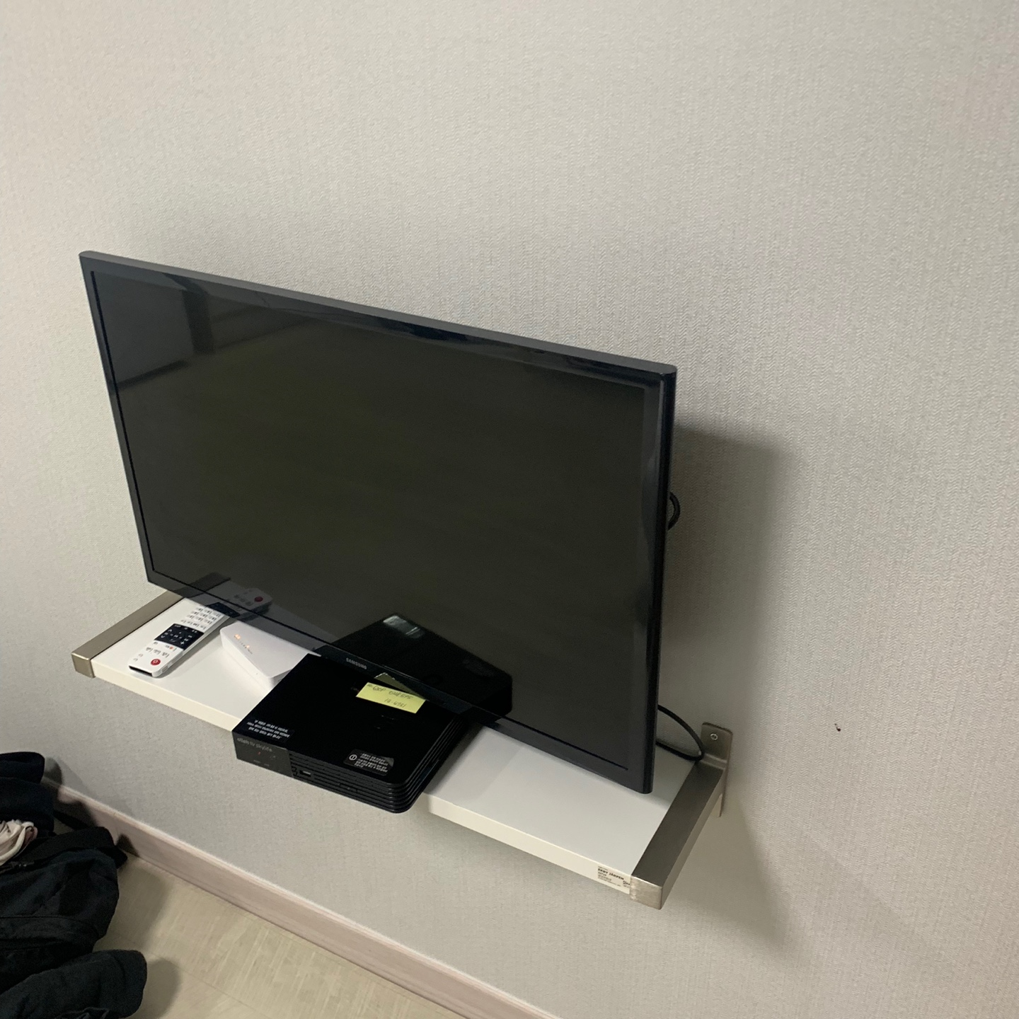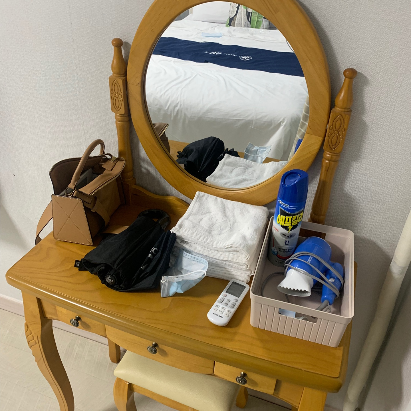 작은 티비와 화장대도 있어요. 화장대가 없는 펜션 이은근 많아서 아침에 화장하기 꽤나 불편했는데 여기는 이렇게 조그맣게 마련되어 있어서 좋네요 ㅎㅎㅎ 드라이기랑 수건도 넉넉하게 준비되어 있었답니다.