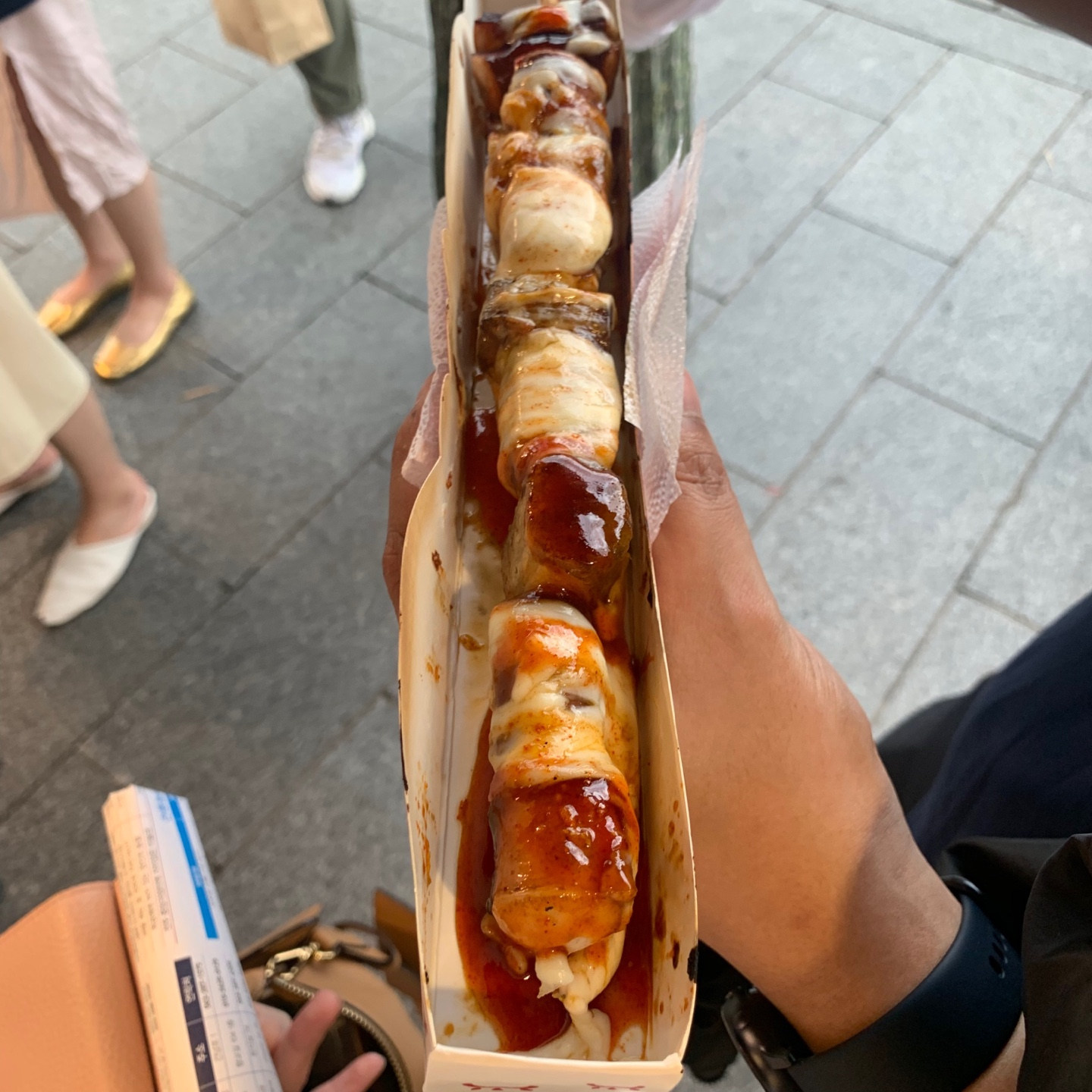 양념도 보기에는 빨갛지만 하나도 맵지 않고 살짝 달달해서 좋았어요. 꼬지가 길어서 어떻게 먹나 할 수 있지만 가게 아예 가위가 마련되어 있어서 막대기로 조금씩 잘라서 드시는 것이 좋아요.